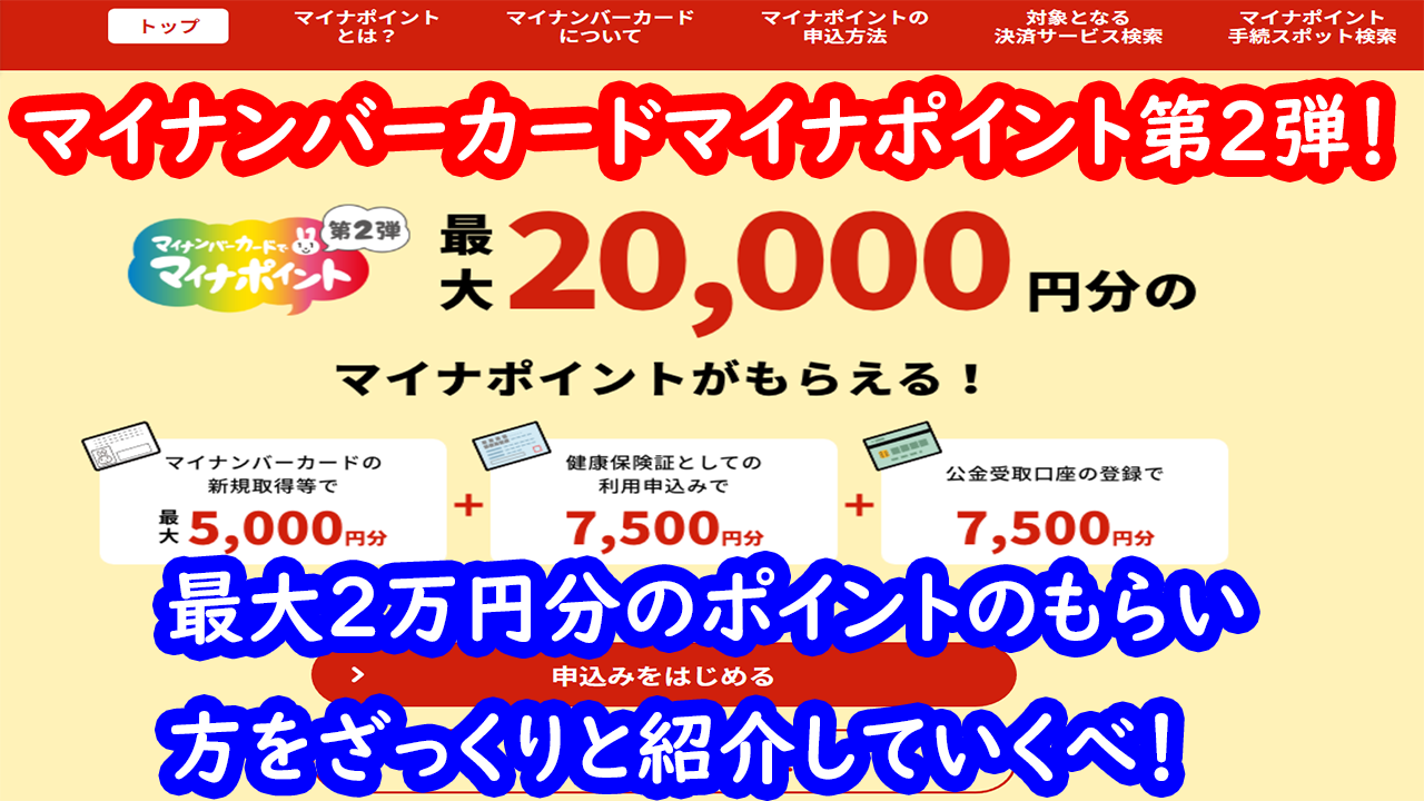 マイナンバーカードを使って申し込む事で最大20,000円分のポイントが受け取れます。